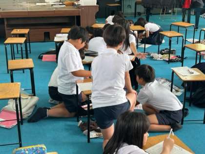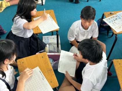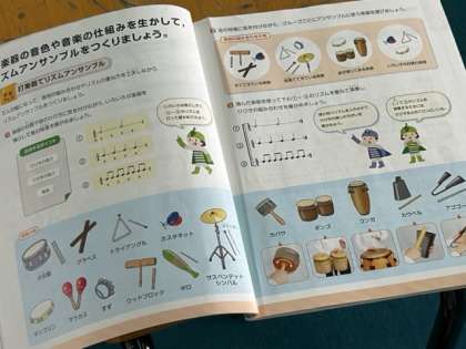 リズムアンサンブルで、どの楽器を担当しようかなど、音楽室で相談中です。お互いの「音」をよく聴いて、これから合わせていくのが楽しみですね。