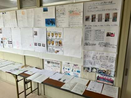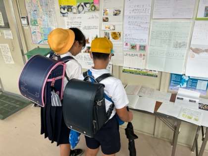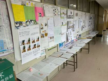 今、職員室前では、子どもたちの「夏休み自由研究」の数々を展示中です。「これってすごいよなぁ」「ようつくったなぁ」と見に来た子どもたちも感心していました。中には「これボクのです。バスボムつくって、家でも試しに使ってみたらシュワシュワしたよ。」と教えてくれる子もいました。後で見に来た事務職員さんも「バスボムって家で作れるんですねぇ!」と感心していました。