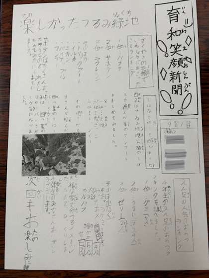 またまた出ました!「育和笑顔新聞」です。今回は4年生に関わる記事でした。みんなでやった「大縄」「鬼ごっこ」「ドッジビー」が楽しかったようです。一緒に遊んだ思い出は、やっぱり心に残りますね。