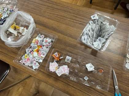 今日はPTAの役員さんや学年担当の方々が、以前、子どもたちが持ってきてくれたベルマークのポイントを数えに、会議室に集まってくださっていました。ご多用のなか、いつもご協力ありがとうございます。