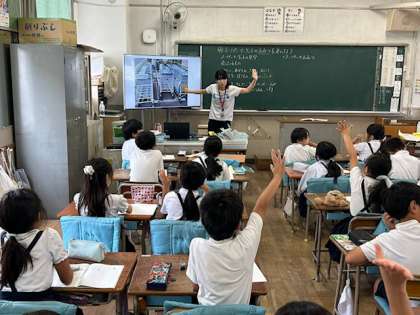 ?社会科で、今、3年生は「店ではたらく人びとの仕事」という単元の学習をしています。今日は各自がお家で調べてきた「買い物調べ」(ご家庭でのご協力ありがとうございました)を元に、買い物をする場所で一番多かったスーパーマーケットのひみつについて、映像を見たり、先生が撮影した写真を見ながら、課題にせまっていきました。