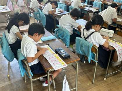 指導していました。緊張したかとは思いますが、一生懸命なその姿勢に、3年生の子どもたちも、一生懸命聞いたり書いたりできました。