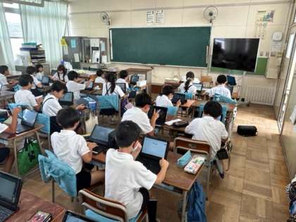 教室をのぞくと子どもたちがタブレットを開いて、黙々と作業をしています。「今、しんどくなっちゃった友だちがいて、先生が付き添いで行ってくれてます」とのこと。しっかり説明できるなぁと感心、そして、先生がいなくてもやるべきこと(この日は「心の天気」を入力していました)を自分たちで進めている様子にも、益々感心しました。間もなく先生が戻られ、いつものように学習が再開。いやはや、成長してきましたね。