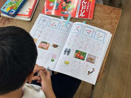 書写ノートを返してもらっている場面です。なんだか皆んなうれしそう。担任の先生が、一人一人のノートを確認し、丁寧に◯を付けたり、間違えやもう少しこうしたら、きっともっと上手に書けるようになるからね、と添削し、付箋を貼ってくれています。すぐにお直しを始める子どもたち。大丈夫、この積み重ねが大事なんですねぇ。「付箋なし!をめざしてがんばるよ」その姿勢にエールを送ります。
