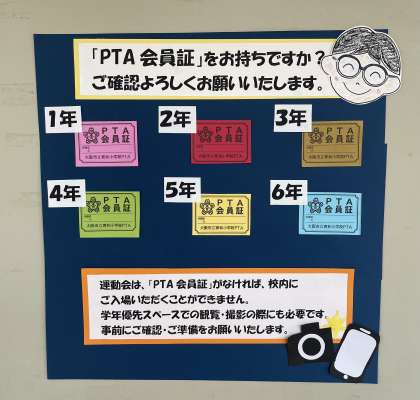 ★「PTA会員証」(各家庭2つ)が必要です。ご確認ができないと入校ができません。