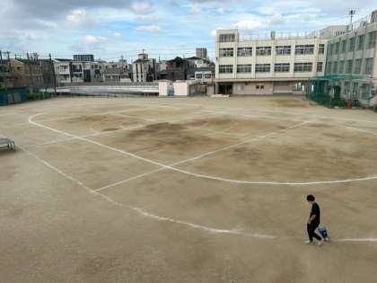 今日も朝から体育主任の先生が、運動場のトラックのライン引きをしてくれていました。毎日、学校みんなのためにありがとうございます。