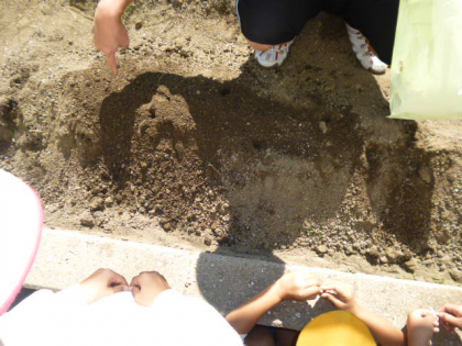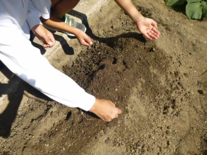 種を大事そうに持って、殻をむき、そっと種を植えました。どんな田辺だいこんができるのか、とても楽しみです!