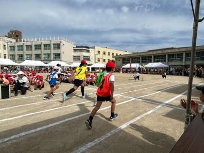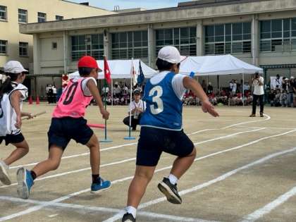 4年生「バトンdeTUNAGE!!」です。4年生は初めてのリレーでしたが、きっとよく練習していたのでしょう。バトンパスやリレーゾーンの使い方もばっちりでした。友だちから友だちへ心とバトンをつないだリレーでした。
