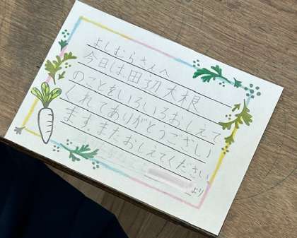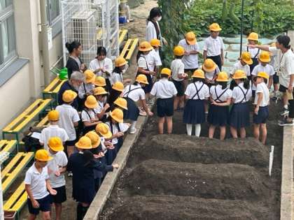 今日3年生は、田辺だいこんのプロ!と呼ばれている方をゲストティーチャーとして招き、だいこんの種を学習園に植えました。「種ってこんなちっちゃいんや!」と驚いている子もいたり、もうさっそく「食べるん楽しみ〜」という子もいたり。これからしっかりお世話してくださいね。