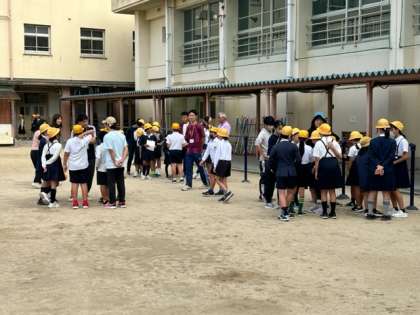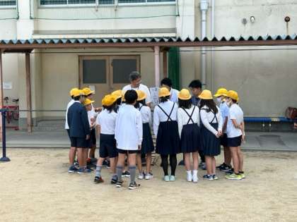 全校朝会のあと、委員会の子どもたちが、先生たちの指示のもと集まってきました。明日から6年生は修学旅行で学校を留守にします。5年生の皆さん、よろしくお願いしますね。