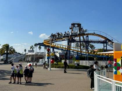 乗り物にのってるとき以外でも、こうやって、友だちと会話しながら巡るのが楽しい。まだ1時間半以上、時間はありますよ。まだ行ってないとこあるかな〜・・・