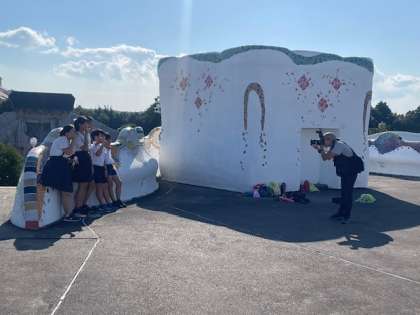 あちらこちらを走り回って、カメラをパチリ。ただ、よく似た服装と帽子の学校の子どもたちもたくさんいるので、見つけるのがたいへんです。たくさんのすてきな写真を、お楽しみにー。