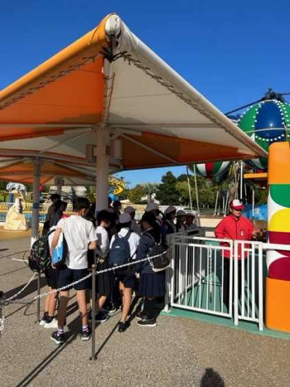 「先生、もうこれ、4回めやねん!」「何回乗っても楽しいなぁ」並んでワクワク、乗ってルンルンのアトラクションです。