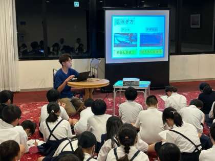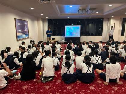 夜7時から8時まで、明日向かう鳥羽水族館で働いておられるスタッフの方に、宿舎で出前授業をしていただきました。