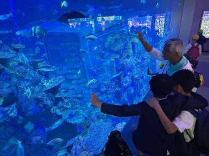 宿舎の方にお別れをした後、バスに乗車し、あっという間に鳥羽水族館に到着しました。クラス毎に記念撮影をして、「さあ、入ろ、入ろう!」と、ニコニコ顔で入館。水槽の魚たちを観ながら「この魚、誰かさんに似てるかも?」「あ〜、似てる似てるぅ〜」と本人も友だちも一緒に探し合って、なんだかとってもうれしそうでした。