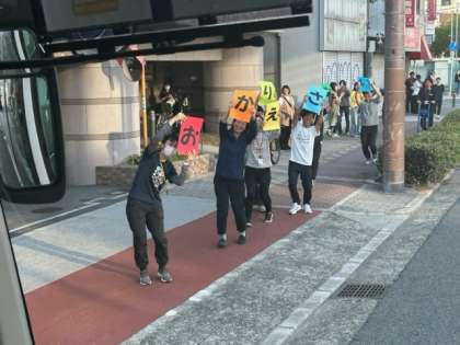 学校に近づくと、猛ダッシュでメッセージを掲げてくれる教職員の姿に、子どもたちもうれしそうでした。たくさんの保護者の方々の心温まるお出迎えもありがとうございました。