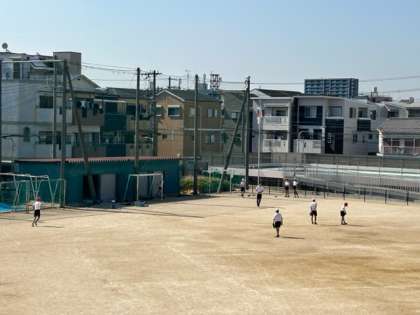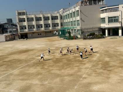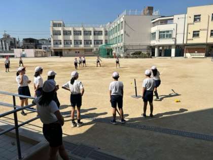 6年生の体育の時間。こちらにボールが転がってきたので、パスして渡すと、子どもたちからお礼のことばがありました。それだけで、何だかうれしくなります。グローブを手にはめて、ソフトボールでキャッチボール。そのあと、2つのコートに分かれてゲームを楽しんでいました。「ナイスキャッチ!」「ナイスバッティング!」の声も飛び交っていました。
