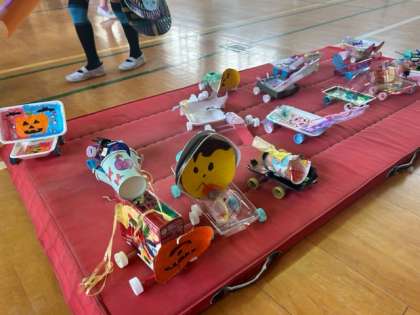 子どもたちがつくった、おもちゃの数々。色や形も楽しくて、観ているだけでもわくわくしてきますね。