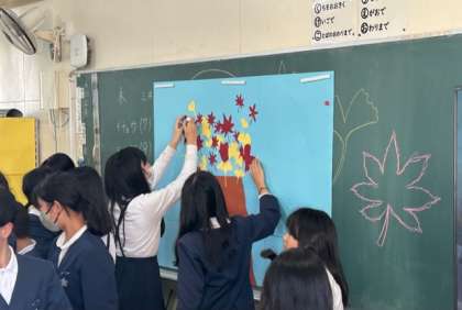 一枚一枚、画用紙を葉っぱの形に切って貼っていたのは掲示委員会です。どんな11月掲示になるか、たのしみですね。