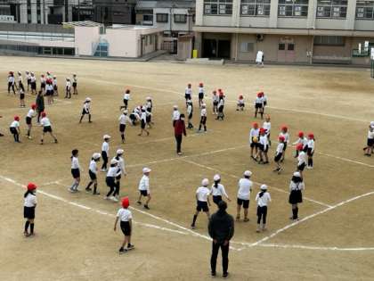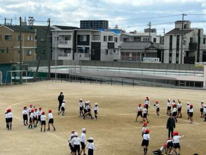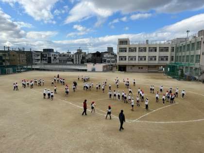 チャイムが鳴って、「この休み時間から運動場は使用できます」の放送が流れました。「いぇ〜い!」「やったぜー!」歓声とともに我先に運動場へと子どもたちが向かいます。育和小学校の運動場は、水捌けがいいですねぇ。体育の時間には、3年生が学年合同でドッジボールをしていました。気温は低くても、見えてきた青空のもと、皆んなで身体を動かして楽しそうでした。