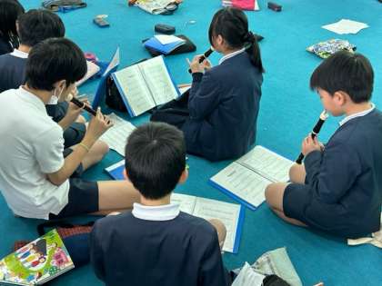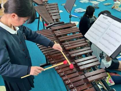 音楽室では、6年生がパートに分かれて合奏の練習をしていました。何小節かごとにリズムを確認したり、お互い声をかけ合って繰り返し弾いてみたり。先生もタイミングを見て近くに寄って、アドバイス。また、木琴パートと鉄筋パートの子どもたちは、近くに楽器を並べて、すでにピッタリと合わせることができていて驚きました。メトロノームも自分で持ってきて、テンポのチェック。その自主的な様子に、さすがは6年生と思わずにはおれませんでした。
