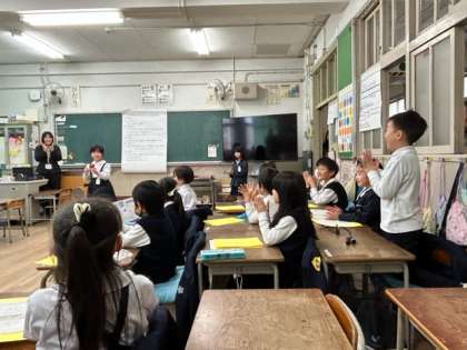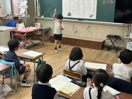1年生です。皆んなに見てもらってドキドキ緊張!拍手をもらって、うれしそうでしたね。