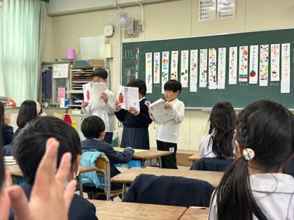 2年生です。一人で、時にはグループで、キラリと光る自分を発表する様子、また順番や段取りも自分たちで進める姿にも成長を感じました。
