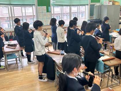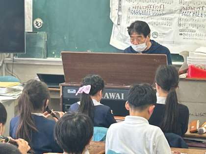 日に日に、音が柔らかくなってきた感じがあるのが3年生のリコーダーです。この日は、送る会にむけて「パフ」の練習をしていました。自分の音と、友だちの音を丁寧に重ねる感じが、やさしいなぁと思いました。