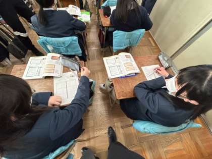 6年生、算数の時間です。今回の課題は「油分け算 」。問題は次のような感じでした。「1リットルのつぼに、油が1リットル入ってます。 この油を、5デシリットルずつ2人で分けます。 しかし、ここには3デシリットルと7デシリットルのマスしかありません。 この2つのマスを使って、5デシリットルずつ分けましょう。 」子どもたちは、ある子は簡単な絵をかいて考えたり、またある子は表にいろいろ書き込んだりしていましたが、なかなか答えに辿り着きません。それもそのはず、大人でも解くのにかなり時間を要します。そんななか、「あ!できました!」。担任の先生が「どれどれ・・・、ふむふむ・・・。すばらしいっ!正解です!!」「おぉ〜っ!すげーっ!」と周りから感嘆の声があがっていました。 ぜひ、時間がありましたら、皆さんもチャレンジしてみてくださいね。