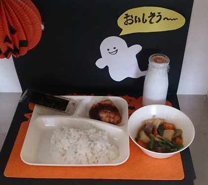 10月30日の給食は「ご飯・みそカツ・鶏肉と野菜の煮もの・焼きのり・牛乳」でした。