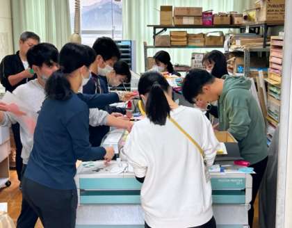 この日、教職員の皆さんは、それぞれの持ち場に分かれて、子どもたちへの指示をしながら、一緒になって準備を進めてくれました。そんななか、教室を飾る掲示物が、少し足りないということが分かるや否や、すぐに印刷室に集まって、ある先生はデザインの印刷、ある先生はハサミを持ってチョキチョキ、またある先生はラミネートと、流れるように作業を進めてくださっていました。思わぬことがあっても、臨機応変に心ひとつに協力くださる姿に、ありがたいなと感じたシーンでした。