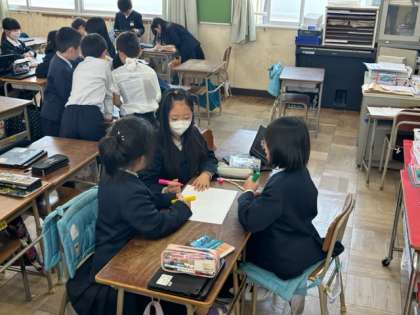 グループに分かれると、さっそくタブレットで調べる姿や、「活動の曜日はどうする?」「やっぱり月曜日はやりたいよねぇ」と相談する様子。どこの係も、さあやるぞ!と意欲満々の雰囲気がありました。