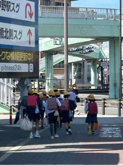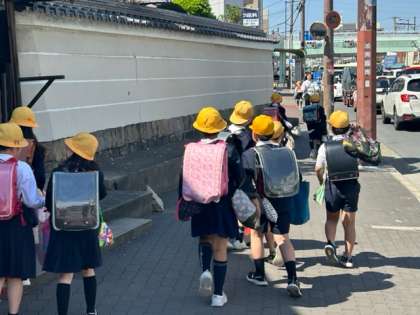 1年生を送り届けて学校に戻ってくる途中、子どもたちが、楽しそうに会話をしながら帰っていく場面に遭遇しました。今日の学校での出来事の話かな、帰ったらどんなことする?と楽しい計画の話かな、と思って歩いていると、かなり遠くで姿を見つけて「校長先生、さようなら〜」と挨拶してくれる子の、多いこと、多いこと。次から次へ、という感じで、私もついうれしくなって、子どもの声に元気をもらって、「みんな、さよなら〜。気をつけて帰ってね」とお別れしました。さよならの後は、「明日も元気に、学校に来てね」のことばが続きます。