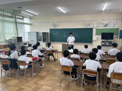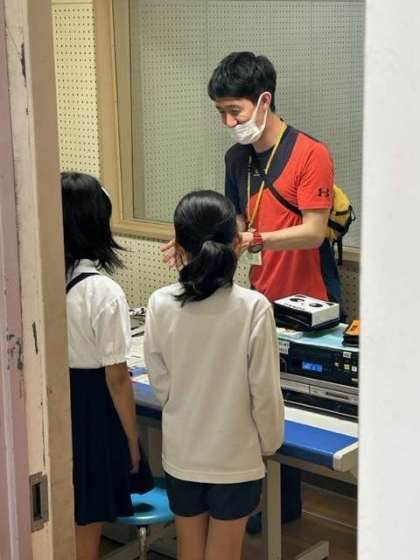 図書委員さんは、自分のお薦めの本の紹介文を考え中。運動委員さんは、育和名物「走リンピック」や「投げリンピック」の役割について、先生の話を聞いたあと、「私もやってみようかな」と、手を挙げていました。また、放送委員さんは、「放送室入るん初めて!意外に狭いんや・・・」と、興味津々の表情で、機械操作について先生からの説明を聞く順番を待っている様子がありました。