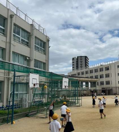 休み時間が始まるチャイムが鳴ると、子どもたちは一斉に運動場へ駆け寄ってきます。「先生、見て!見て!シュート入るようになってんよ」「私は、一輪車を練習中。あとで見に来てね〜」「ジャングルジム、一緒に登ろうよ〜」みんな、元気です。