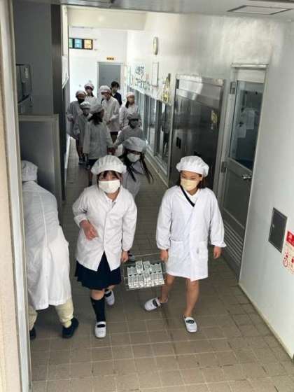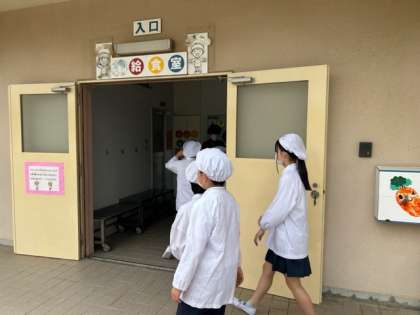 いえいえ、そうではありません。新学期、給食がスタートしてから、いつも3時間めの休み時間になると6年生が給食室に来て、1年生のために教室まで給食を運搬してくれています。運んだあとは、「僕たちも、1年生のときにしてもらったからね〜」と、爽やか笑顔で教室から去っていきました。1年生がちゃんと「ありがとうございました!」とお礼の挨拶ができていたことは、言うまでもありません。
