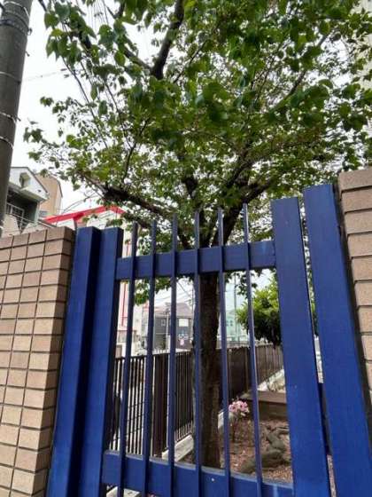 学校の正門を挟んで、自転車置き場と逆側にある桜の木。見上げながら、すっかり緑に変わったなぁ、今年も桜の花、たくさん楽しませてもらったなぁと思いながら、少し下に視線を移すと・・・