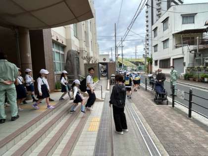 少し肌寒い朝となりました。今日は3年生が、ハルカスへの社会見学に出発しました。道中でのマナー等を確認して、いざ出発。気をつけて行ってきてくださいね。