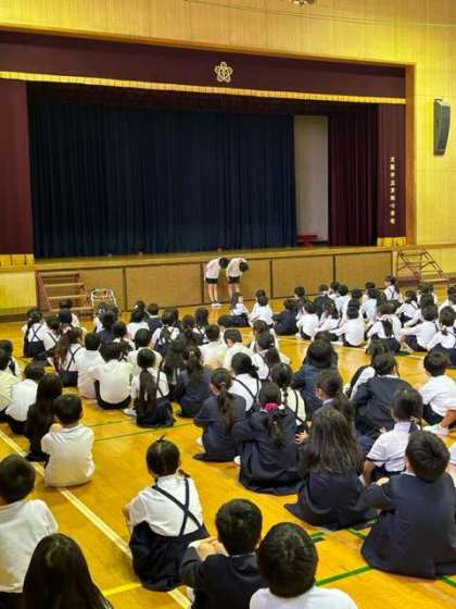 転入生が来て新しい仲間が増えたこと。教育実習の先生との新しい出会いがあったこと。国際クラブの階級式が今日あって、新年度の活動がいよいよ始まること。そして、なんと!みんなが頑張って集めてきたベルマークで、ピカピカの跳び箱が購入できたこと。(ご多用のなか学校に来て、点数を数えてくださったPTA委員会の方々。ベルマーク募集にご協力いただいた保護者の皆様。ご協力、ありがとうございました!)最後に、委員会の子どもたちからのお知らせ、とかなり盛り沢山でしたが、その都度拍手が起こり、特に新しい友だちが増えたクラスや学年からは、「やったーっ!」という声や笑顔もありました。