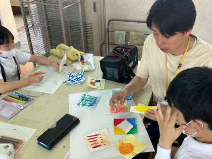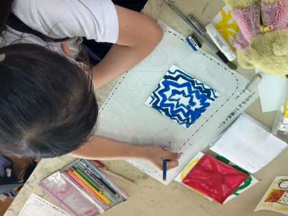 ?今、5年生は図画工作の時間に、自分の気持ちや心をイメージしながら色や形で表し、自分の「心のもよう」を絵にするということにチャレンジしています。「こんな風にしたら、優しい気持ちが表現できるかな」「この感じが、ぼくの怒りの感じ」など、表現方法にも、子どもたちそれぞれの工夫が見られています。
