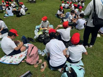 「やった。おにぎり、2種類あるやん!」「しっかり食べて、エネルギー満タンにしないとね」・・・お家から準備いただいたお茶と一緒に、美味しくいただきました。