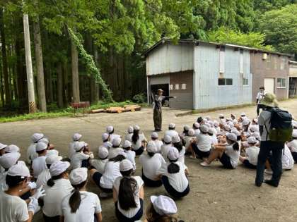 すぐに到着。これから沢のぼりと、奥にある場所で魚つかみをクラスで交代して行います。しっかり話も聞けていますね。