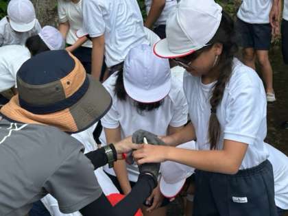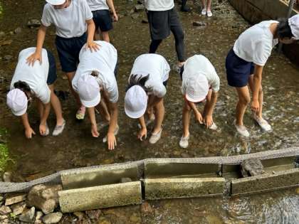 1組から順番に、魚つかみが始まりました。逃げては追いかけ、逃げては追いかけ。わー、きゃー、大騒ぎです(笑)。
