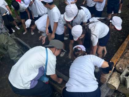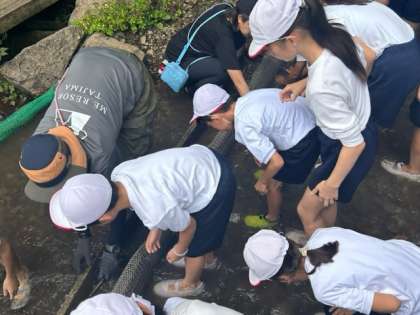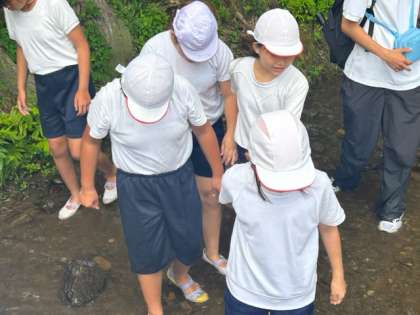 始めは恐る恐る、手を繋がながら水に入っていましたが、途中からは自信がついたのか、ガッツを出して果敢に捕まえにいきました。