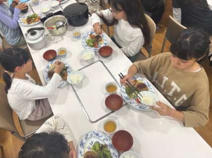 「さあさあ、晩御飯や」とにこやかに食堂前に集まってきました。今日の献立はこんな感じです。