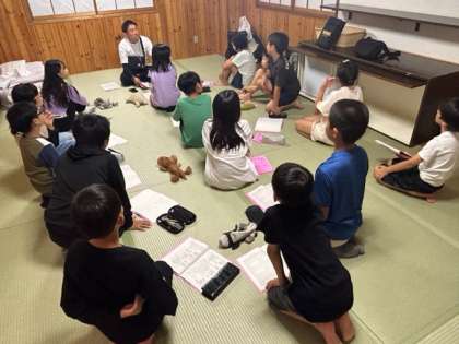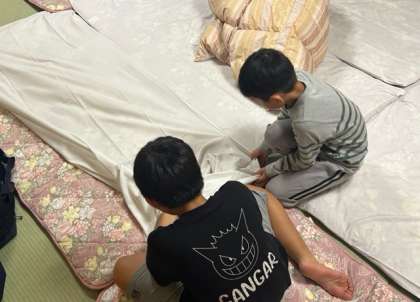 ?最後の行事は、班長会議と室長会議。今日の振り返りと、明日に向けてのめあてや確認を行なっていました。その間に、各部屋では布団や枕カバーの準備を準備しています。素早いチームは、歯磨きも済ませたり、しおりに今日の思い出を書きこんだりしていました。どんなことを書いているのかな〜。