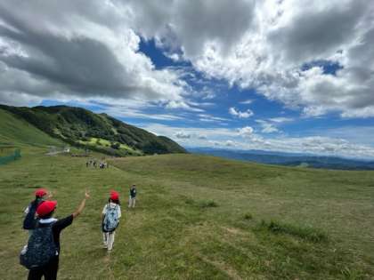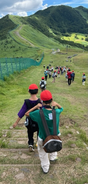 下山のときは、途中までは皆んなで降りて、そこからは「トレジャーハンター」をしました。活動班ごとにポイントを巡りながら、このあとの飯盒炊爨のときにつくるカレーライスの材料カードをゲットしていきます。