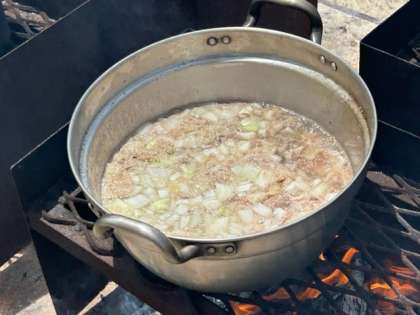 「カレーもできたよ。めっちゃいいにおい〜」