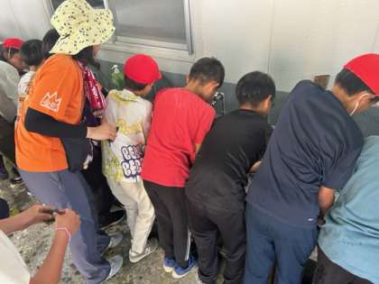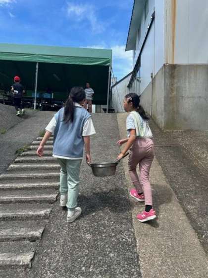 ?いつもの給食ならば、食べたら給食室まで運んで、あとは「よろしくお願いします」をして休み時間、になりますが、今日はそういうわけにはいきません。自分たちで使った器具や食器は自分たちで洗って片付け、返却します。借りたセットが揃えば、宿舎の方のチェックタイム。最後のチームは「厳しめにお願いします!」と自らハードルをあげてお願いし、見事に合格をもらえました。そして「ありがとうございました」のことばも、忘れてはいませんでした。