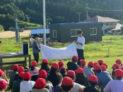 朝の集いです。ラジオ体操で身体を動かして、シーツの畳み方の説明を聞いて。今日は「立つ鳥跡を濁さず」の気持ちで身辺周りを片付けます。またお世話になった方々への感謝の気持ちを、態度や声に出して、過ごしていきましょうね。